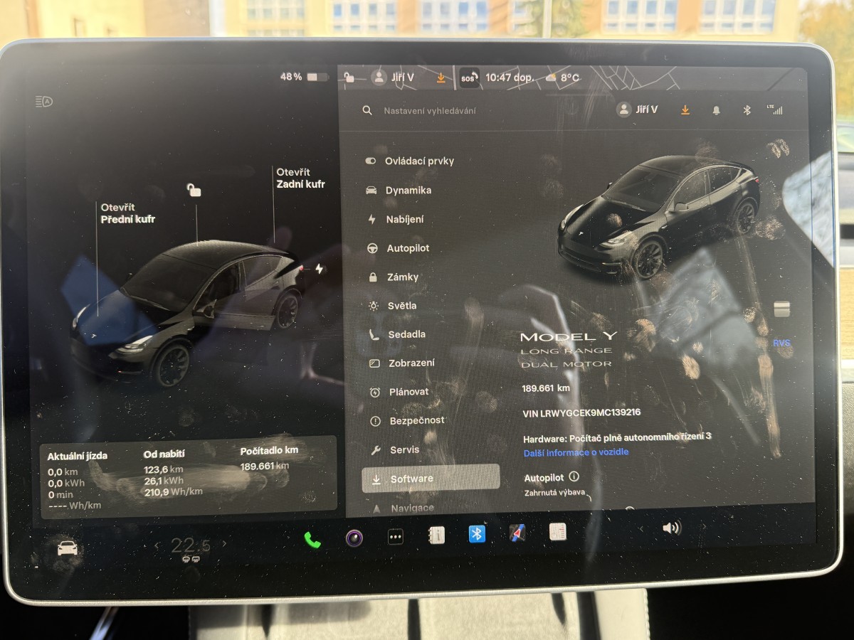 WLTP-Reichweite Berechnung basierend auf aktuellem Batteriestand | 214 km při 49% nabití | Při 100% 437 km |